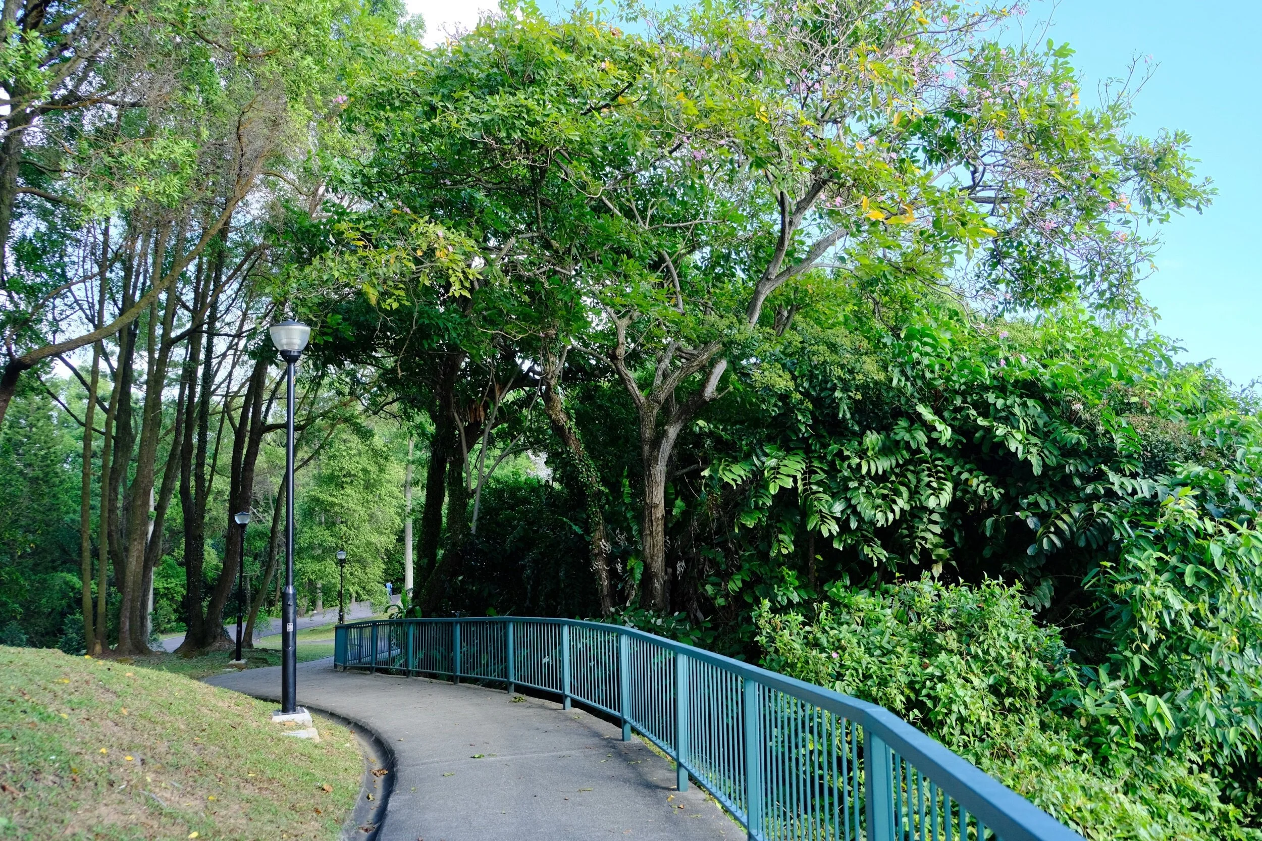 Depending on the weather and company, we get to our finish line differently. One option is to take the route on the left, which translates to a few flights of stairs down, a step slope down the Vigilante Drive, and a winding narrow pedestrian walkway along South Buona Vista Road with cars on the left and trees on the right.